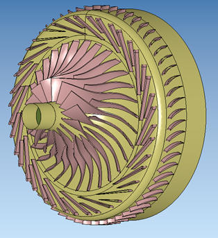 The High Efficiency Centrifugal Compressor was produced as a collaboration between NASA and the United Technology Research Center, with aggressive goals for operation efficiency[i]. This case was chosen as a benchmarking case for two reasons. First, the case represents a high pressure ratio compressor with advanced aerodynamic design and mixed diffuser design. Second, flow path and blade coordinates as well as detailed test data are provided as a part of the source material, cited in Appendix A.